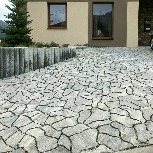Um Fugen zu vermeiden, empfehlen wir eine versetzte Verlegung. In der verlegten Fläche wirken die Steine wie Natursteine.