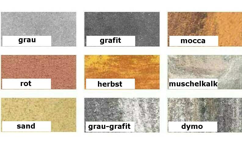 | Farben | grau, rot, sand, grafit, herbst, grau-grafit, mocca, muschelkalk |